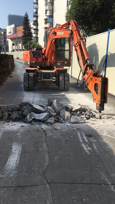 10月23日,富健新村前道路改造工程正式啟動,道路沿河邊搭起了圍擋,施工人員正在破除原有路面,安裝雨污水管道。