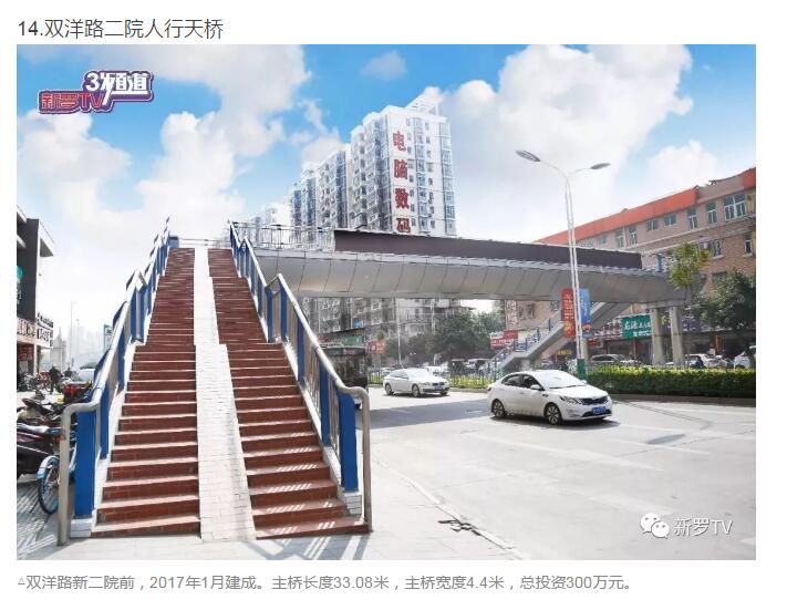 年來,市委、市政府加大市政基礎(chǔ)設(shè)施投入,大力推進(jìn)人行天橋建設(shè)。截止2017年底,中心城市共興建20余座人行天橋。