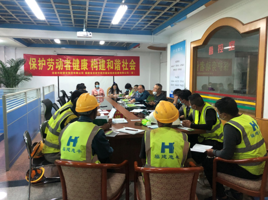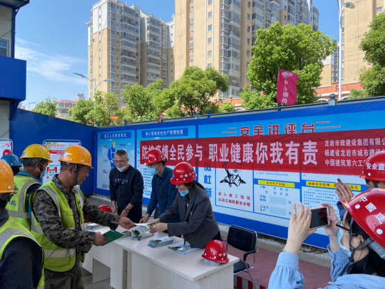 2020425日至51日是全國第18個《職業(yè)病防治法》宣傳周。為深入宣傳貫徹《職業(yè)病防治法》,進一步普及職業(yè)病防治知識,提高一線工人自我防護意識和能力,切實保護一線工人的職業(yè)健康權(quán)益。根據(jù)市國資委和城發(fā)集團相關(guān)工作部署,428日上午,公司分管安全副總經(jīng)理修海金及質(zhì)安部人員深入在建項目開展職業(yè)病宣傳活動。